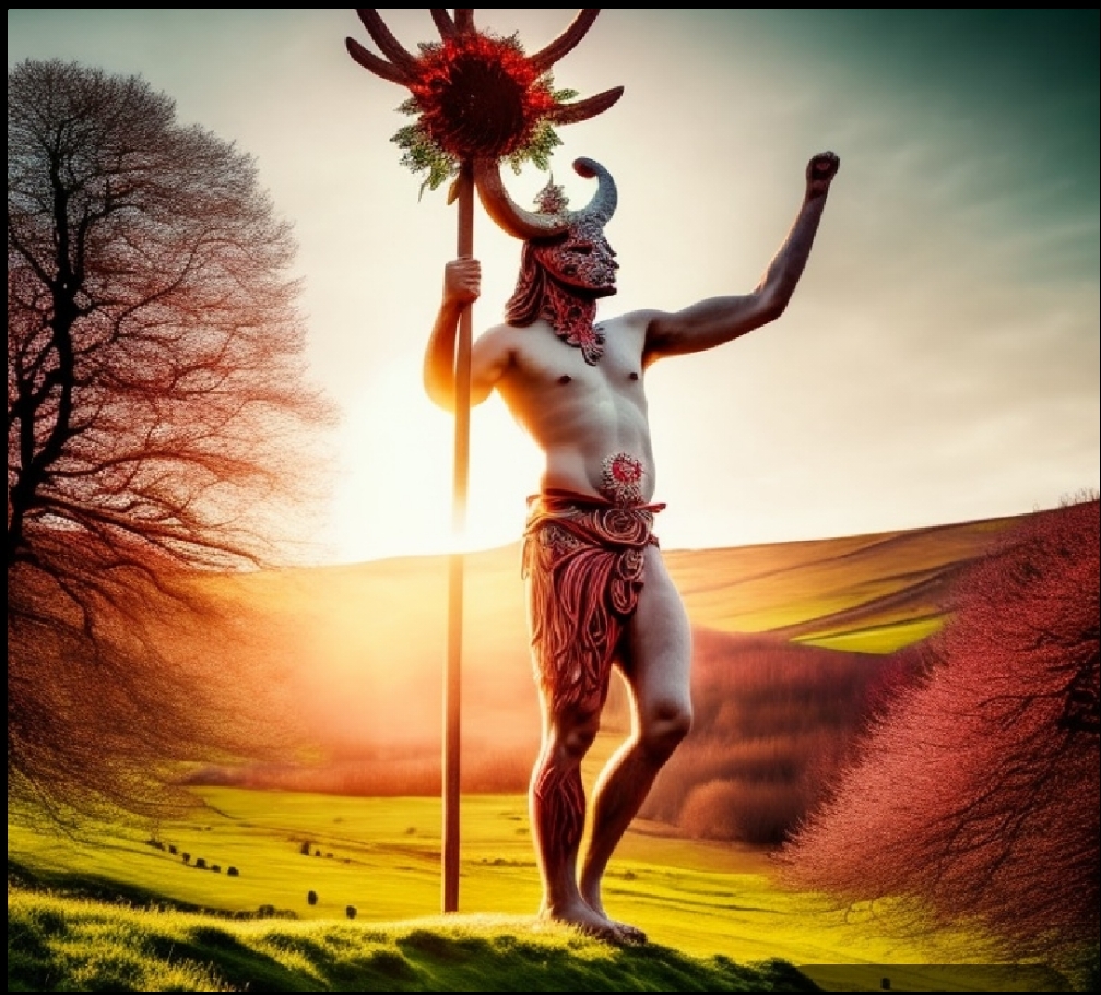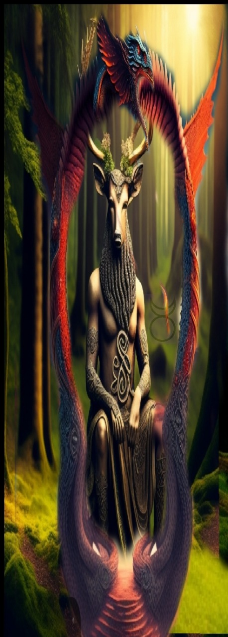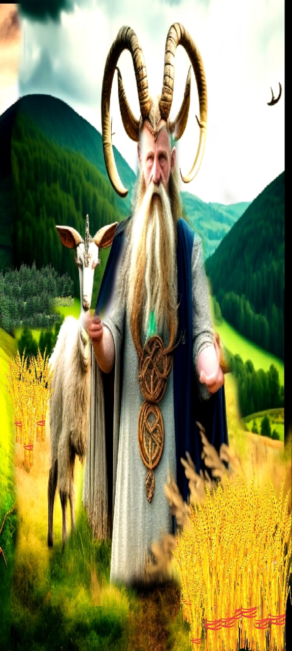 Así es un Dios del Elemento Tierra, de la generosidad, el sacrificio, la salud física, el conocimiento que transmite a la tribu humana, y por tanto su protector y maestro, también rige la paternidad, el trabajo, la Iluminación exterior y interior ( con cada uno de sus cuernos en espiral de carnero). Su color es el Turquesa. Lo veneramos en el Solsticio de verano y en la Gran Cosecha, es decir, en el verano. Su animal sagrado es el Macho Cabrío y su fase solar del mediodía al inicio del atardecer.